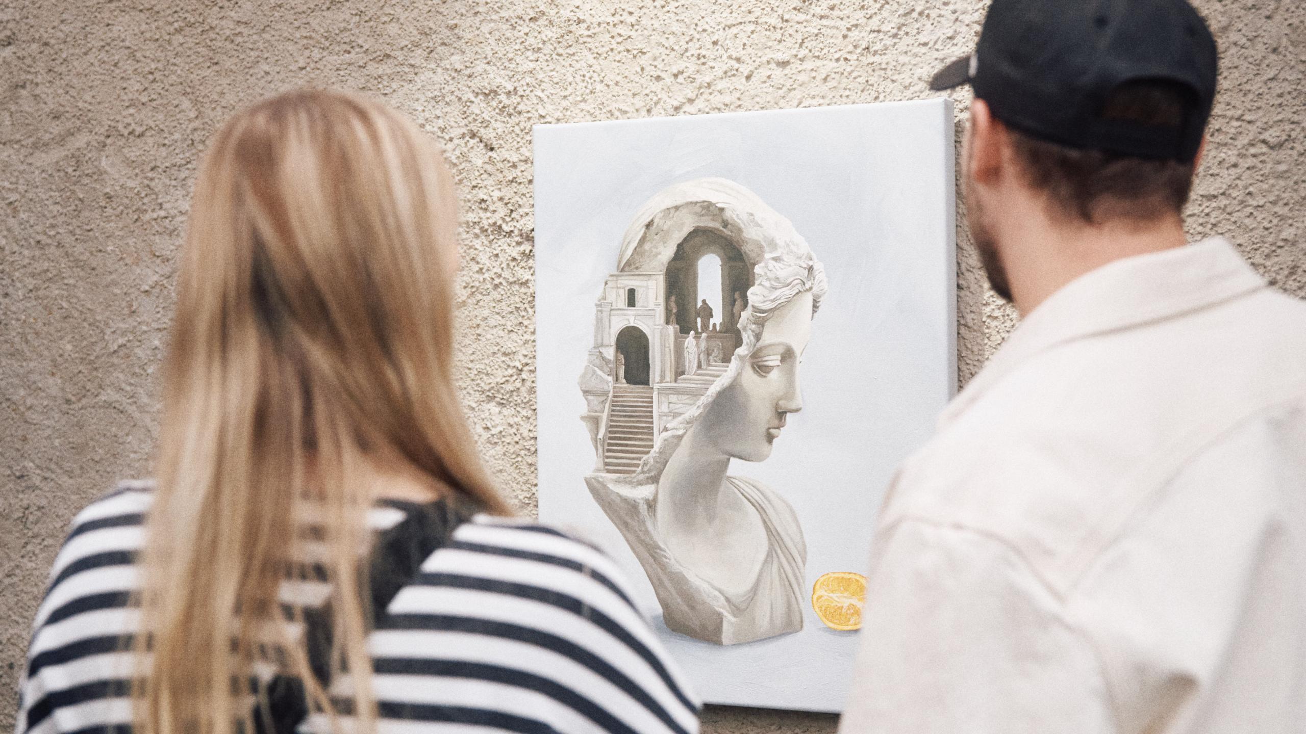 Das entscheidet die Stimmung: vielleicht in der imposanten ehemaligen Kesselhalle, auf der Dachterrasse, oder im urbanen Winterquartier. Jeder Ort hat seinen ganz eigenen Charakter. Begleitet von feinen Häppchen tauchst Du dann in die Welt der Kunst ein. Unsere Galerist:innen nehmen Dich mit auf eine Tour durch die Bergson Gallery. Nah an den Werken, den Geschichten und den Künstler:innen dahinter.
